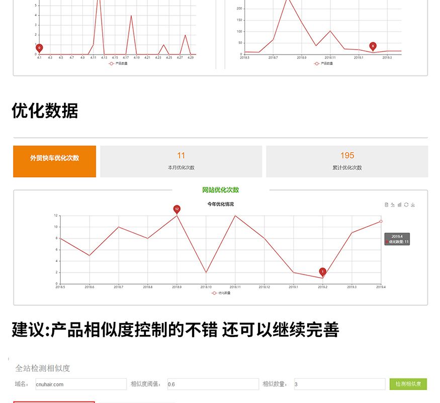 客戶公司于2014年創(chuàng)立于中國青島,是行業(yè)內(nèi)發(fā)制品供應商,致力于高端假發(fā)、睫毛的出口貿(mào)易。谷歌seo推廣效果怎么樣?我們的Google優(yōu)化推廣假發(fā)睫毛行業(yè)案例客戶于2017年選擇外貿(mào)快車產(chǎn)品,初次簽訂了1年合作協(xié)議,2018年到期以后選擇了一次性續(xù)費3年。目前外貿(mào)快車網(wǎng)站上共發(fā)布了1341個產(chǎn)品,并且客戶很注重產(chǎn)品文案的質(zhì)量,不相似產(chǎn)品的比例高達80%以上。產(chǎn)品新聞和行業(yè)知識也持續(xù)在更新中,目前網(wǎng)站上已發(fā)布111條新聞和113條行業(yè)知識。這些頁面共計為客戶帶來2258條詢盤,日均流量更是高達264個。