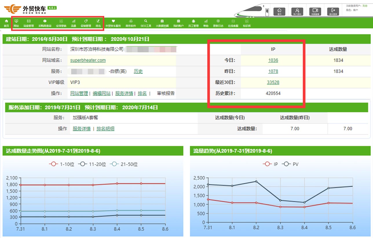 外貿快車智能監控系統每天實時統計用戶網站的PV和訪問IP。
