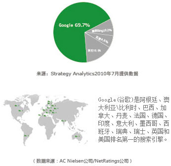 企業觸及全球用戶Google(谷歌)占全球69%的搜索市場份額,覆蓋200多個國家和地區,有100多種語言界面和國際域名。