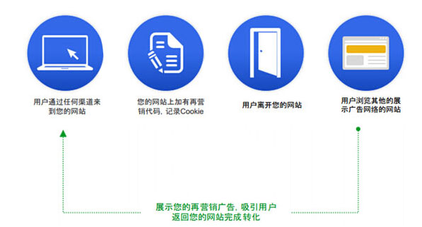 就是將之前來(lái)過(guò)您網(wǎng)站的訪客再次帶回您的網(wǎng)站,給予網(wǎng)站更多機(jī)會(huì),從而增大完成轉(zhuǎn)化的可能 再營(yíng)銷(xiāo)標(biāo)記可嵌入網(wǎng)站中的任何頁(yè)面,進(jìn)而幫助您更精準(zhǔn)地定位受眾群體。例如,將再營(yíng)銷(xiāo)代碼 嵌入網(wǎng)站首頁(yè),在用戶訪問(wèn)您網(wǎng)站首頁(yè)時(shí),其Cookie ID就會(huì)被添加到再營(yíng)銷(xiāo)列表中。。